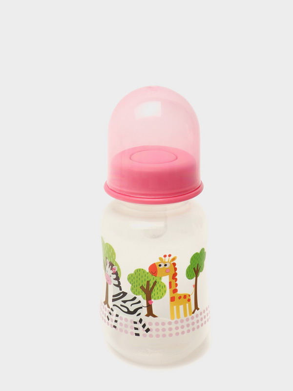 Бутылочка 125 мл с силиконовой соской, рисунком и градуировкой. Изготовлена из пищевого, нетоксичного поликарбоната, стойкого к температуре 120°С. Прозрачная, прочная соска изготовлена из пищевого силикона.