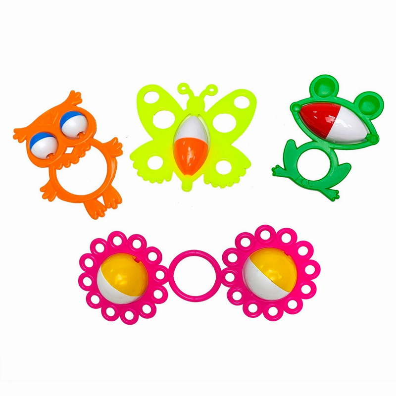 Состав набора: погремушка " Лягушонок ", погремушка «Совенок », погремушка " Бабочка", погремушка «Снежинки»