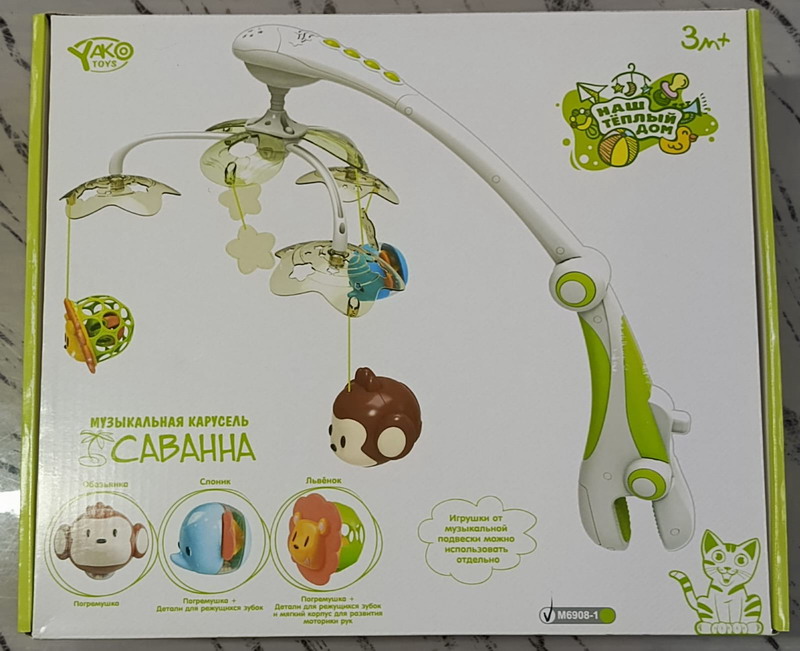 Музыкальная карусель украсит колыбель малыша или малышки. Яркий и красочный мобиль развивает зрительное восприятие ребенка, а музыка - успокоит и привлечет его внимание. В музыкальную часть игрушки встроен заводной механизм, поэтому для работы данной игрушки не требуются батарейки. У данной модели регулируется угол наклона подвесных игрушек. Это одна из первых игрушек малыша, ведь он может рассматривать и тянуться к погремушкам, подвешенным к основной части.