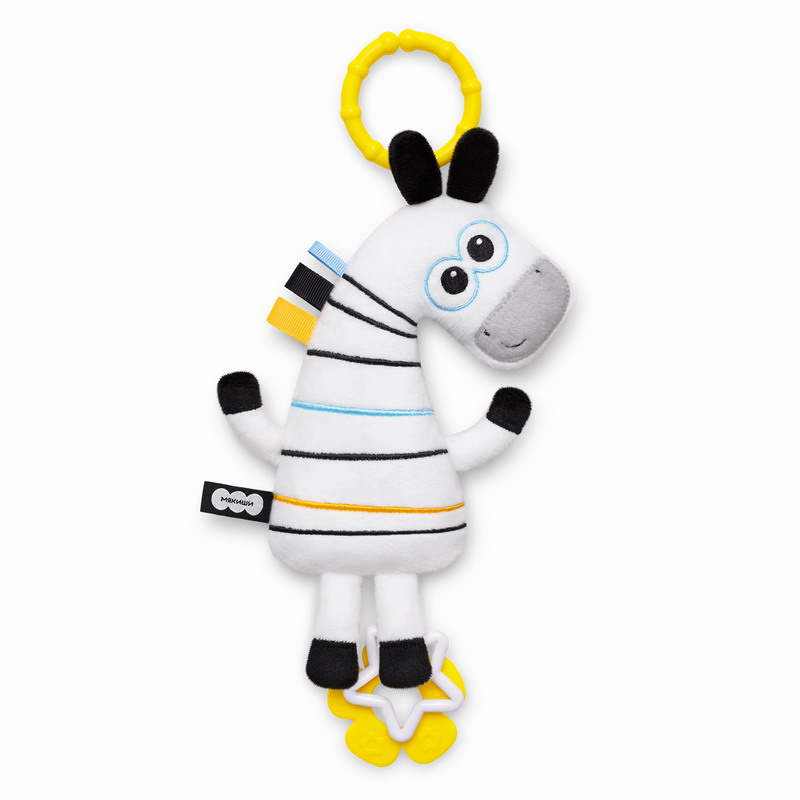 Занимательная мягкая развивающая игрушка подвеска хрустящая Зебра с петельками станет первой любимой вещью для малыша.