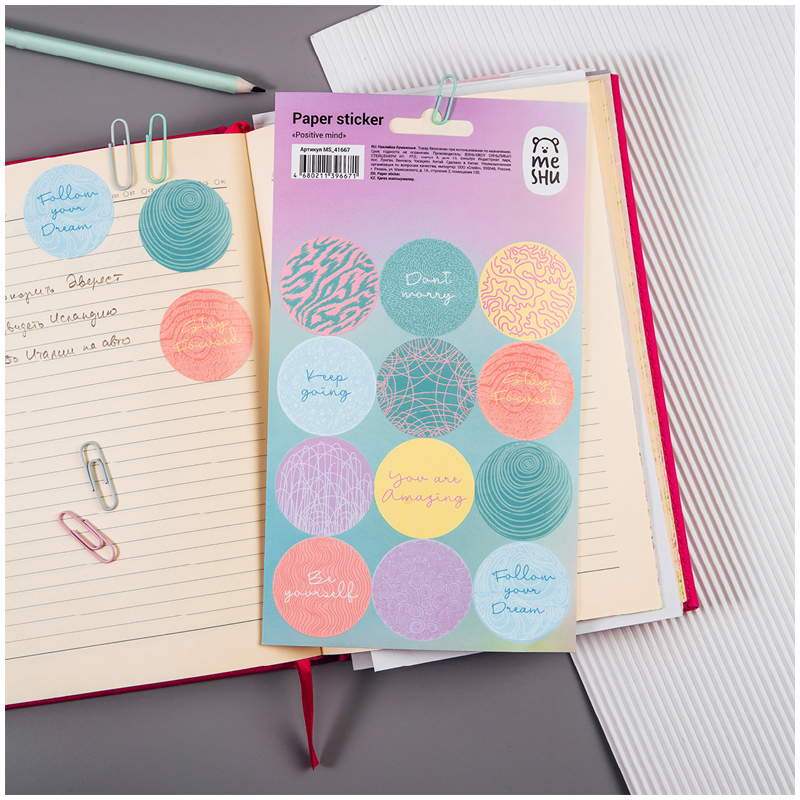 Бумажные наклейки MESHU Positive mind – отличный помощник в креативном оформлении записей в блокнотах и дневниках.