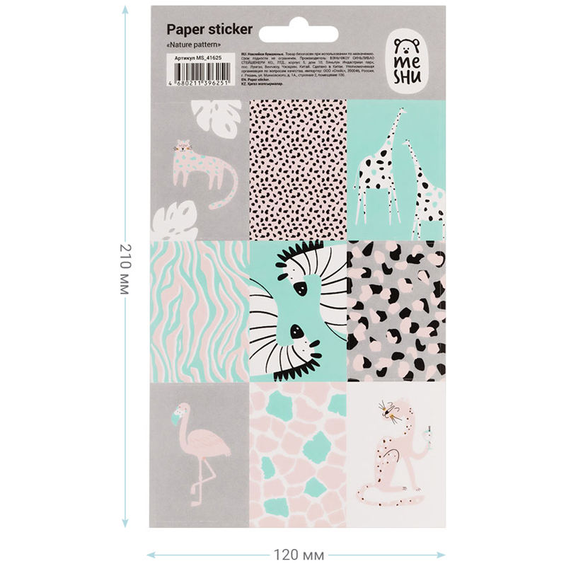 Бумажные наклейки MESHU Nature pattern – отличный помощник в креативном оформлении записей в блокнотах и дневниках. На листе размером 12*21 см расположены 9 наклеек, изготовленных из самоклеящейся бумаги.