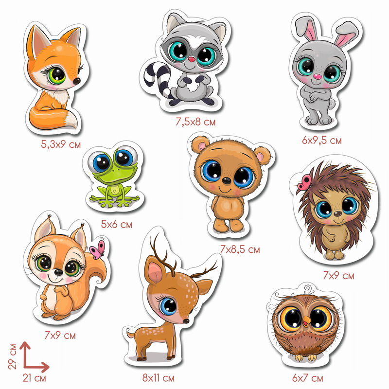 В комплект входит 1 лист с наклейками, размер листа – 21х29 см.