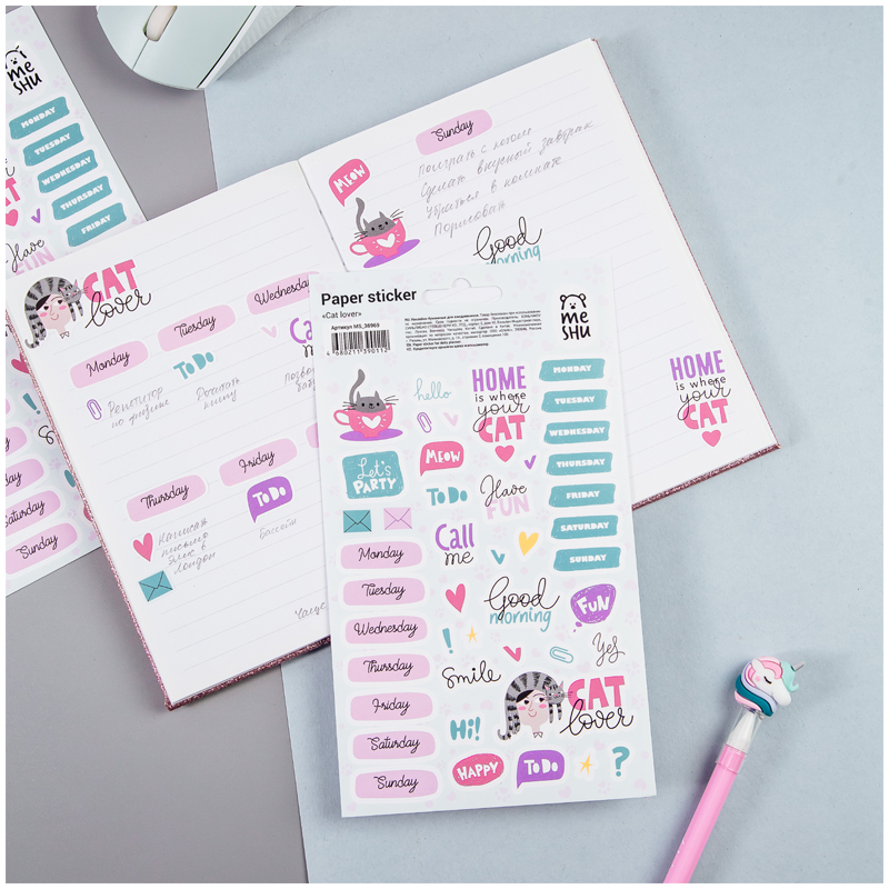 Бумажные наклейки для ежедневников MESHU Cat lover – отличный помощник в креативном оформлении записей в блокнотах и дневниках.