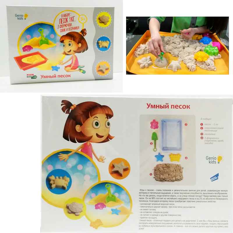 Набор для творчества "Умный песок" позволит создать в домашних условиях настоящую песочницу. Благодаря своему составу (кварцевый песок с добавлением силикона) песок имеет легкую и приятную структуру и вместе с тем хорошо держит форму и не распадается. Его легко убрать и счистить, он абсолютно не токсичен. В наборе имеются также лопатка и три формочки.