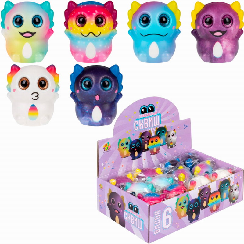 Игрушка-антистресс КРУТОЙ ЗАМЕС "Глазастый сквиш Аксолотль", 8х9 см,, ассорти 6 видов, Т26168, 12 штук.
