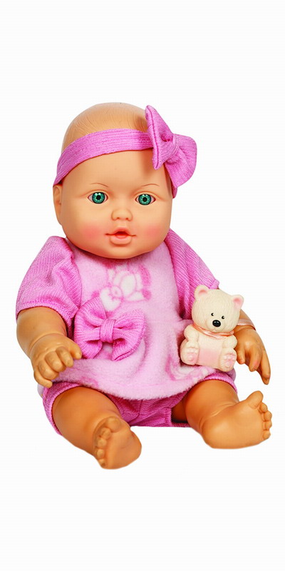 Малышка с мишуткой — кукла из серии «Малыши и малышки» представляет собой образ младенца — девочки с милым личиком, пухленькими щёчками, её так и хочется взять на ручки и позаботиться о ней.