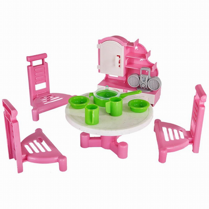 Набор мебели Гостиная 2 серии «Кристина». В комплекте: столик, 3 стульчика 4 предмета посуды, сервант с полочками и шкафчиками, часы настольные. Дверца шкафчика открывается, ящички выдвигаются. К этому набору подойдут куклы около до 12 см. Игрушка изготовлена из качественного пластика, рассчитана для игр детей от 3-х лет.