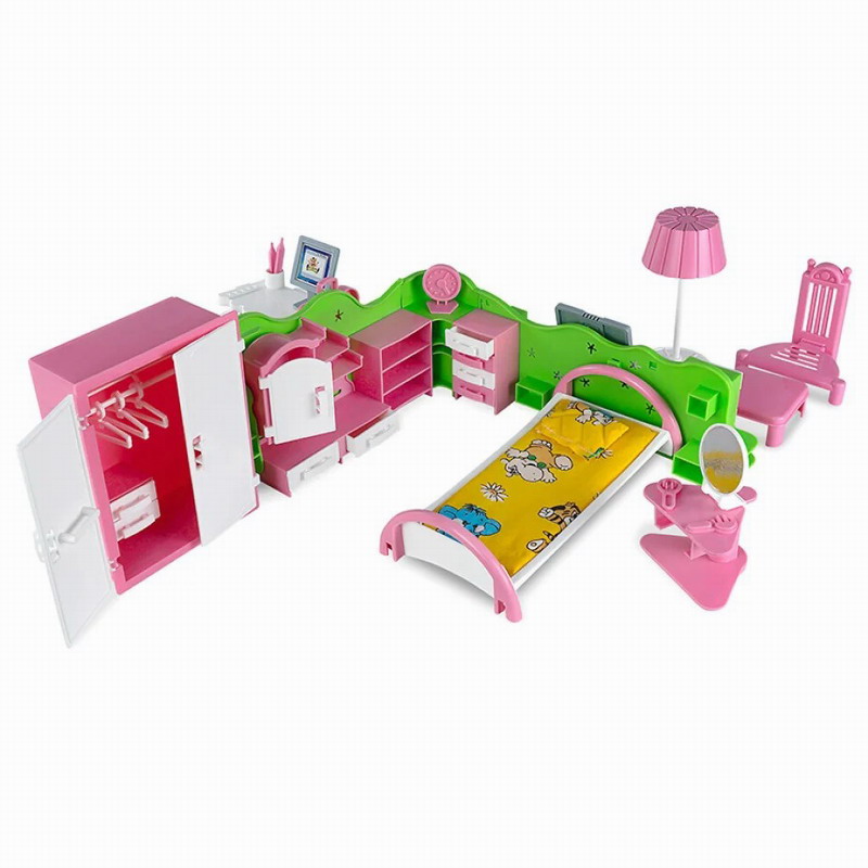 Набор мебели «Кристина» отлично подойдет девочкам для игр в куклы. В набор входит комплект стен, разбивающих игровое пространство на 3 зоны, — детскую, спальню и гостиную. Кроме этого, в наборе есть шкаф для одежды с ящичками и вешалками, сервант с ящичками, кроватка с матрасиком и подушкой, стол рабочий, столик журнальный, 2 стульчика, трюмо с ящичком, торшер, тумбочка, телевизор, компьютер, часы, магнитофон. К этому набору подойдут куклы высотой до 12 см. Игрушка изготовлена из качественного пластика, оптимальна для игр детей от 5 лет дома и в садике.
