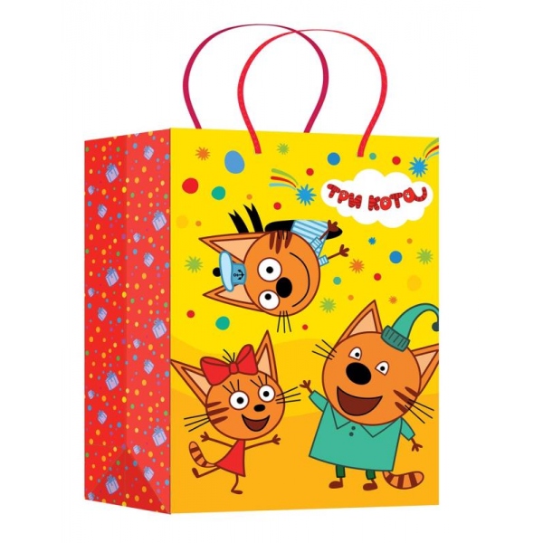 Подарочный матовый пакет «Три кота» ТМ «Чудо-праздник» станет отличным дополнением к вашему подарку и сделает его незабываемым: