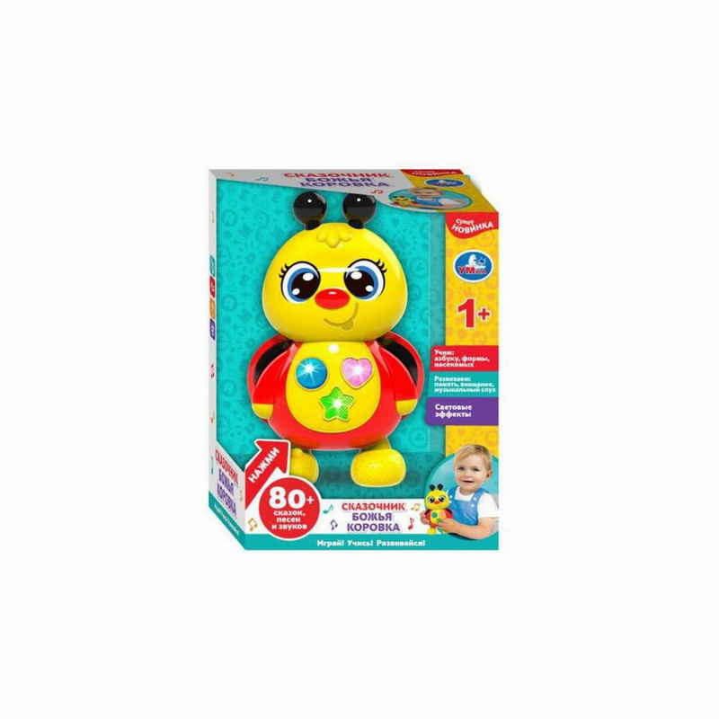Вашего малыша приведёт в восторг эта игрушка в виде забавной божьей коровки с тремя крупными кнопками разной формы. Он с удовольствием будет нажимать на эти кнопки и слушать увлекательные сказки, весёлые песенки и забавные звуки.