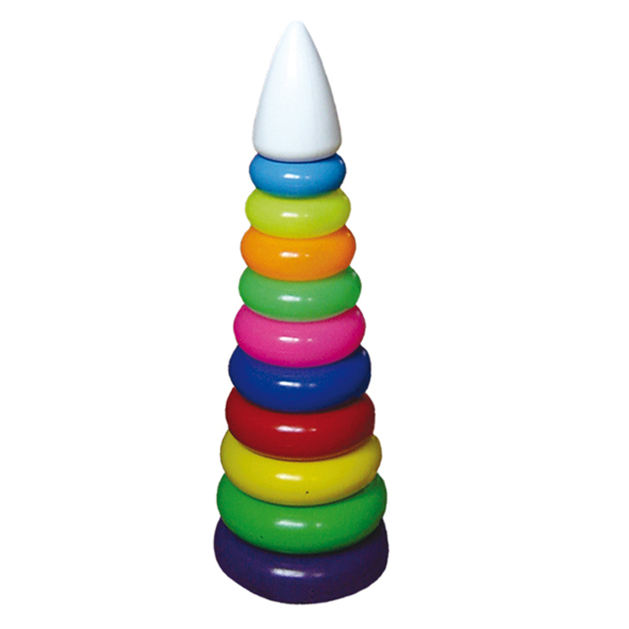 Игра Пирамида "Гигант" 60см – пластмассовая игрушка состоит из стержня ,10 колец разного цвета и наконечника ввиде конуса, d нижнего кольца 21 см. Высота 60 см. Игрушка развивает моторику, координацию, логику, воображение. Знакомит ребёнка с цветами, формами.