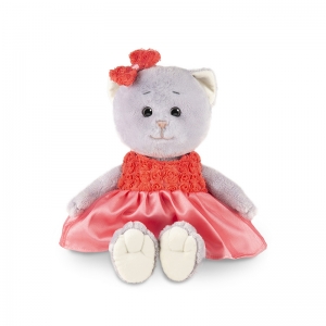 Если у вас растет своя маленькая озорница, ее обязательно порадует милая кошечка в алом вечернем платье с бантиком на голове, с которой можно и летать в танце по комнате, и сладко спать.