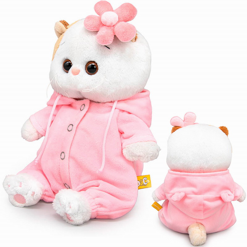 Малышка Ли-Ли в трогательном розовом комбинезоне и крупным розовым цветком на голове. Комбинезон с капюшоном и застёжкой на кнопки сшит из нежно-розового софта. По низу штанишек вставлены резиночки.
