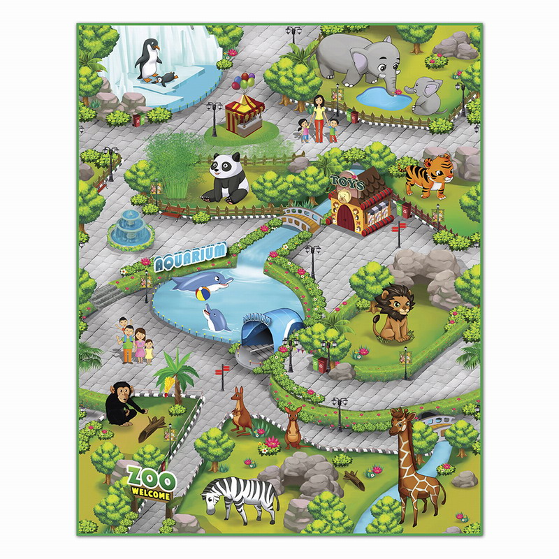 Коврик «Зоопарк» познакомит детей с животными, расскажет о них интересную информацию и научит произносить их названия на английском языке.
