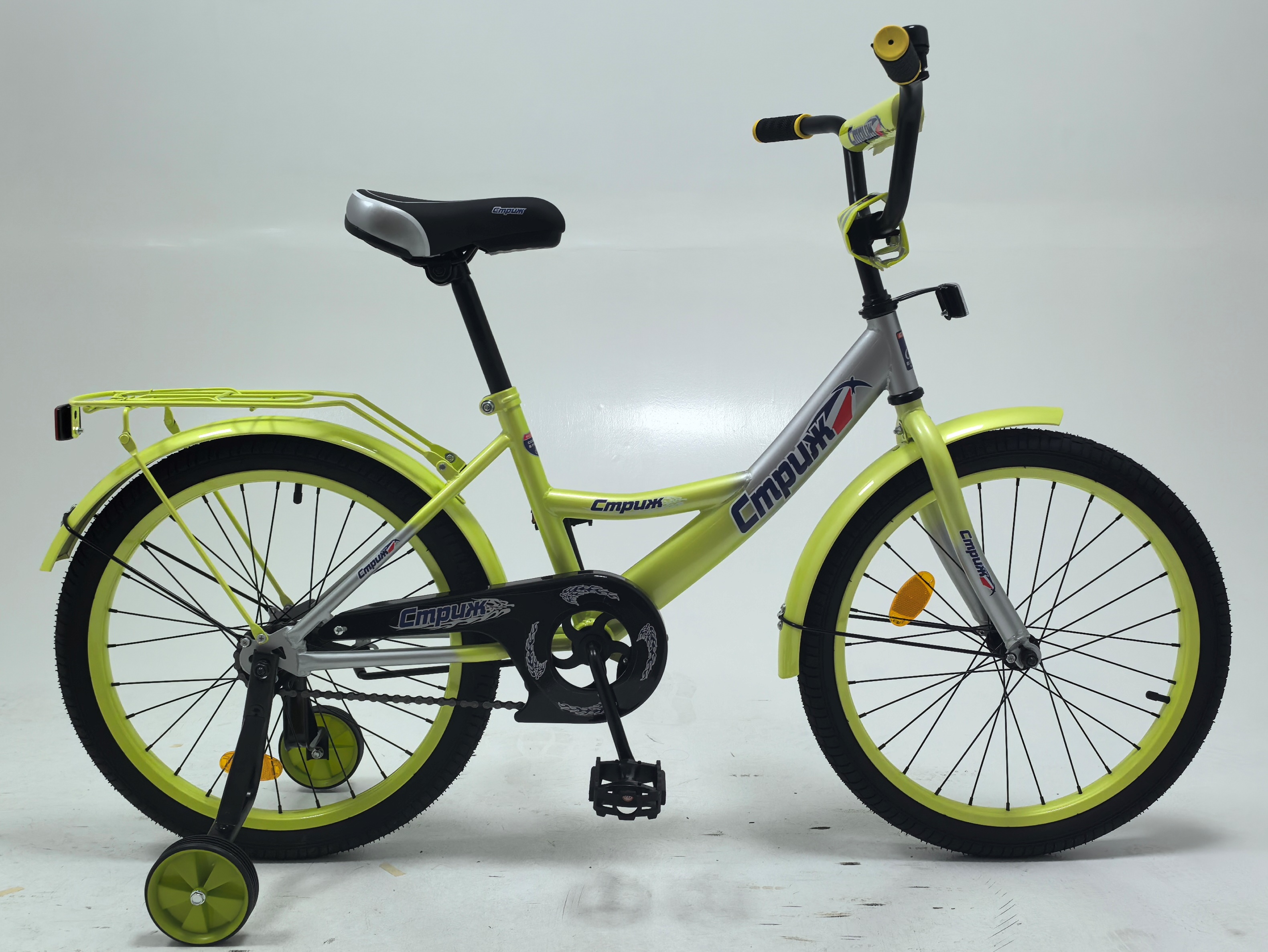 Велосипед "Стриж" с колесами 20 дюймов подойдёт детям от 120см. Для максимально комфортного катания велосипед оснащен дополнительными боковыми колесами, защитой цепи и крыльями. Руль и сиденье регулируются по высоте. В комплекте есть багажник для перевозки полезных мелочей, звонок и катафоты. Велосипед оборудован удобным ножным тормозом. Прочная сталь рамы выдержит самые серьезные испытания. Максимальная нагрузка: 50кг., вес велосипеда 12,4кг. Велосипедный спорт - один из самых веселых вариантов тренировок для детей.